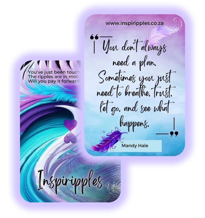 Inspiripples consists of a deck of 55 beautiful cards, each carrying an inspirational quote or words of encouragement.
